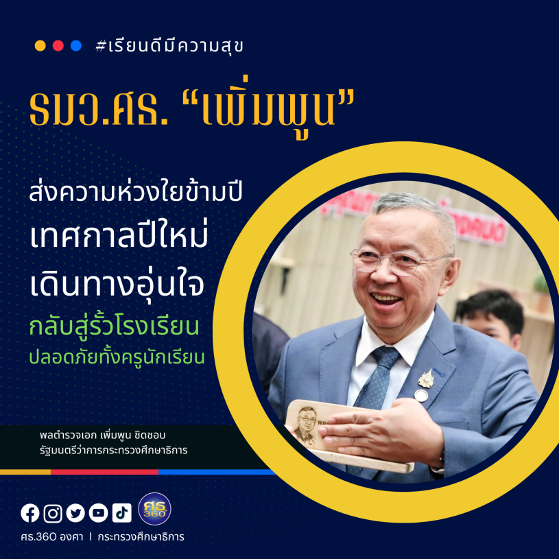“ในนามกระทรวงศึกษาธิการ ขอส่งคำอวยพรและความปรารถนาดีไปยังนักเรียน ครูและบุคลากรทางการศึกษา ขอให้ปีใหม่ 2568 เป็นปีที่ดีและเต็มไปด้วยความสุข ความสำเร็จ สุขภาพแข็งแรง ปลอดภัย และใช้เวลาในช่วงวันหยุดยาวเทศกาลปีใหม่ร่วมกับครอบครัวอย่างคุ้มค่า กลับมาเริ่มปีใหม่กับความสดใส พร้อมเดินหน้าพัฒนาการศึกษาตามนโยบาย “เรียนดี มีความสุข”ต่อไป” โฆษก ศธ. กล่าว