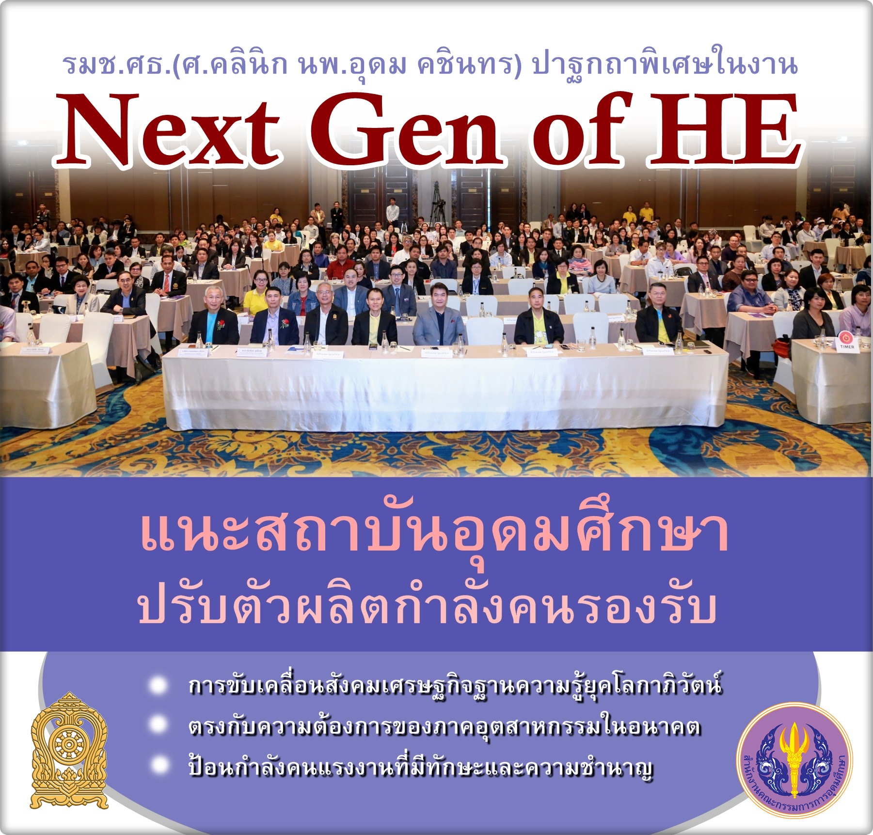 ศาสตราจารย์คลินิก นพ.อุดม คชินทร รัฐมนตรีช่วยว่าการกระทรวงศึกษาธิการ ปาฐกถาพิเศษเรื่อง “วิกฤตอุดมศึกษา: ปัญหาการผลิตบัณฑิตที่ไม่ตอบโจทย์ความต้องการของผู้ประกอบการ” ในการสัมมนาทางวิชาการเรื่อง การปฏิรูปอุดมศึกษาไทยแบบพลิกโฉม: ร่วมสร้างวัฒนธรรมการเปลี่ยนแปลง (Next Gen of HE) เมื่อวันจันทร์ที่ 25 มีนาคม 2562 ณ โรงแรม เดอะ เบอร์เคลีย์ ประตูน้ำ กรุงเทพฯ