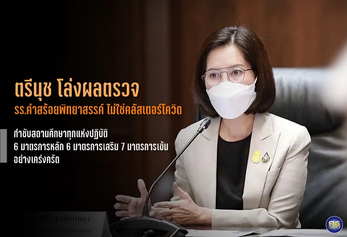 05 พ.ย. 64 “ตรีนุช” โล่งผลตรวจ รร.คําสร้อยพิทยาสรรค์ ไม่ใช่คลัสเตอร์โควิด กำชับสถานศึกษาปฏิบัติตาม 6 มาตรการหลัก 6 มาตรการเสริม และ 7 มาตรการเข้ม อย่างเคร่งครัด