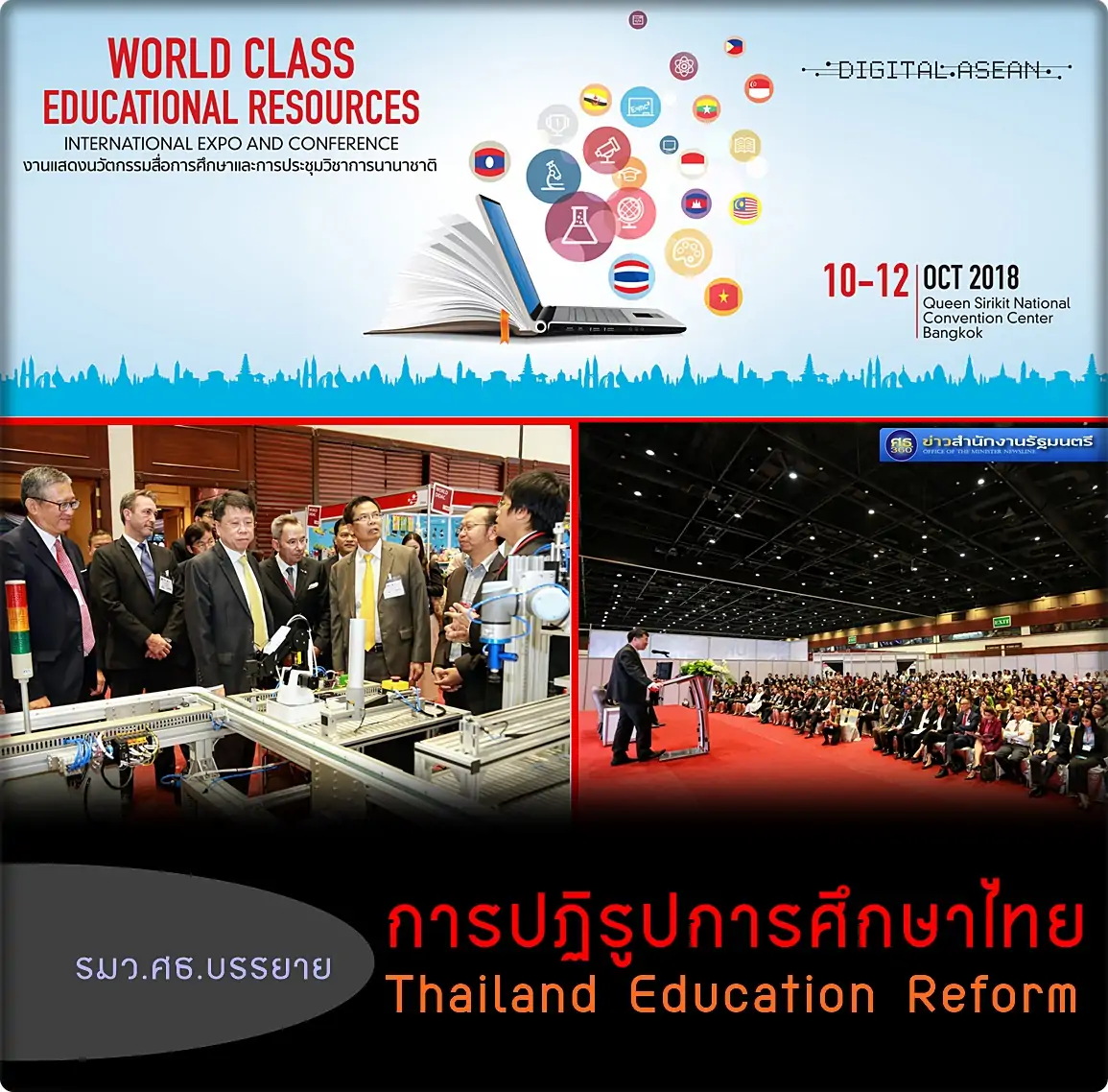 นพ.ธีระเกียรติ เจริญเศรษฐศิลป์ รัฐมนตรีว่าการกระทรวงศึกษาธิการ ปาฐกถาพิเศษ “การปฏิรูปการศึกษาไทย Thailand Education Reform” ในงานนิทรรศการสื่อการสอนใหม่และการประชุมผู้นำทางการศึกษา “World Class Educational Resources: International Expo and Conference” พร้อมทั้งเป็นประธานเปิดการแข่งขันการควบคุมหุ่นยนต์และระบบอัตโนมัติด้วยเทคโนโลยีอุตสาหกรรม 4.0 ชิงถ้วยพระราชทานสมเด็จพระเทพรัตนราชสุดาฯ สยามบรมราชกุมารี